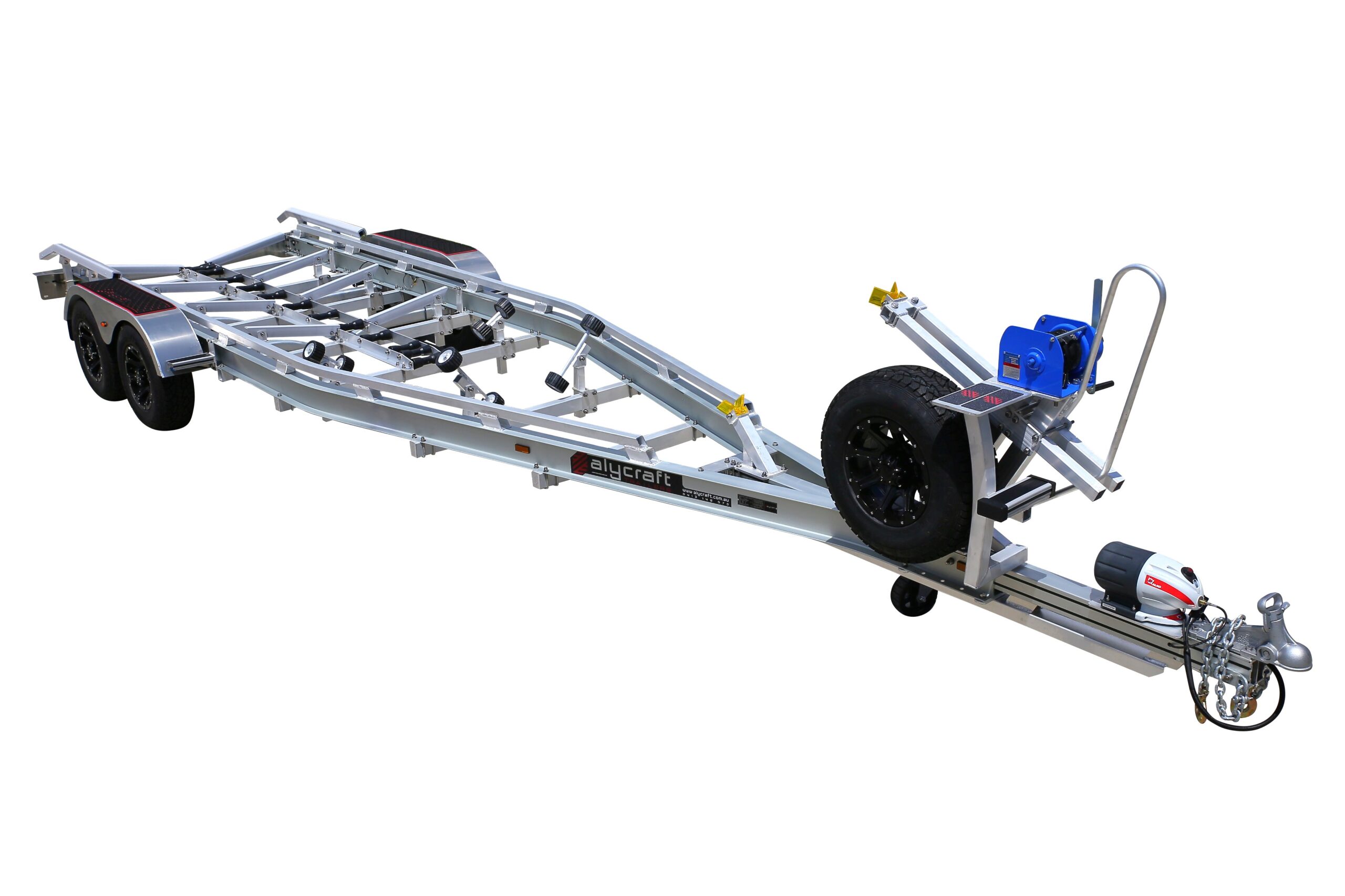 Crafted for boats of 7.8 to 9.2 meters, (27ft-30ft) the Alycraft AC2830 is a strong built robust trailer, supporting up to 4500kg. Constructed from high-strength aluminium, including marine-grade Stainless Steel 316 fixtures, you have the choice between heavy duty torsion suspension or traditional load share leaf springs.