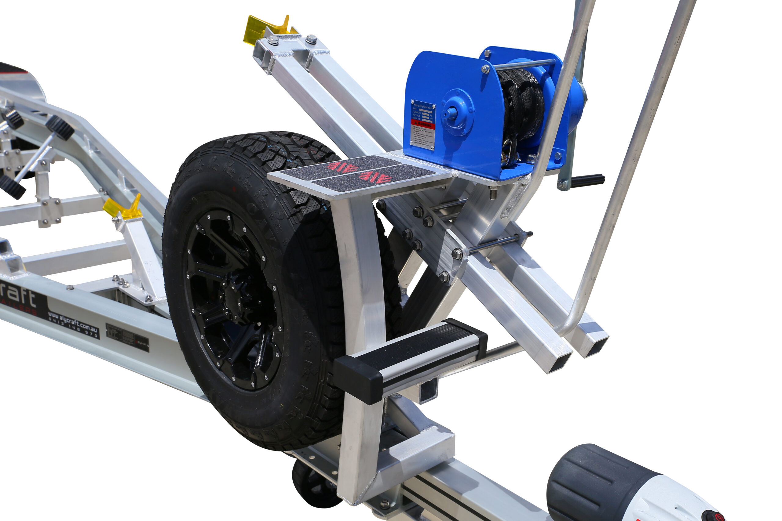 Superior braking is assured with both axle Kodiac disc brakes, stainless steel backed brake pads and AL-KO IQ7 Brake actuator. Rolling on Blacked out 15″ machined alloy rims and polished aluminium guards make it one good looking quality trailer to carry your boat.